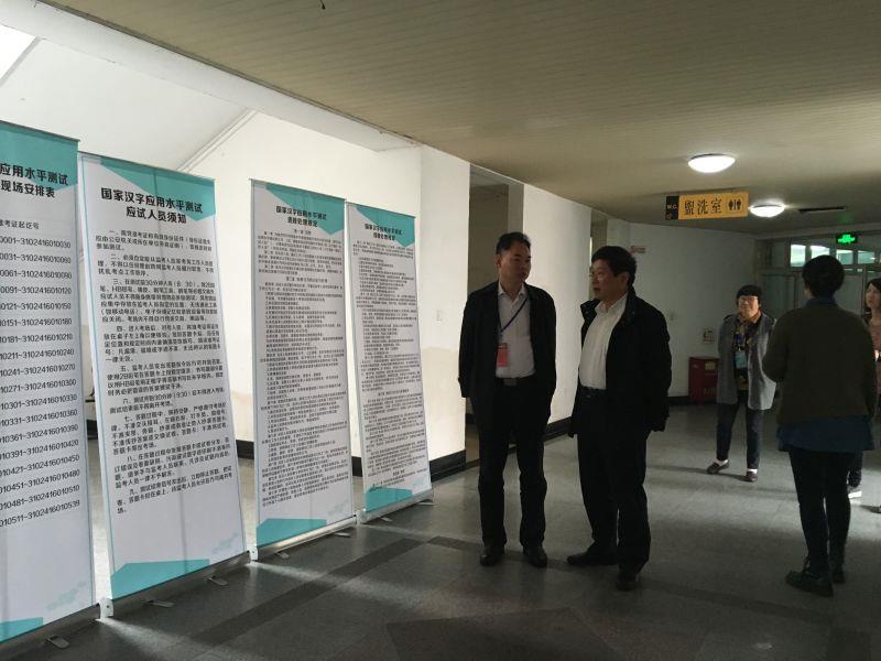 11月19日上午9:00,ac米兰官网中文网站2016年国家汉字应用水平测试在宝山校区教学C楼如期开考。全校539名师生报名参考;市语测中心徐民杰主任、校教务处彭章友处长等相关领导,亲临测试现场巡考指导。