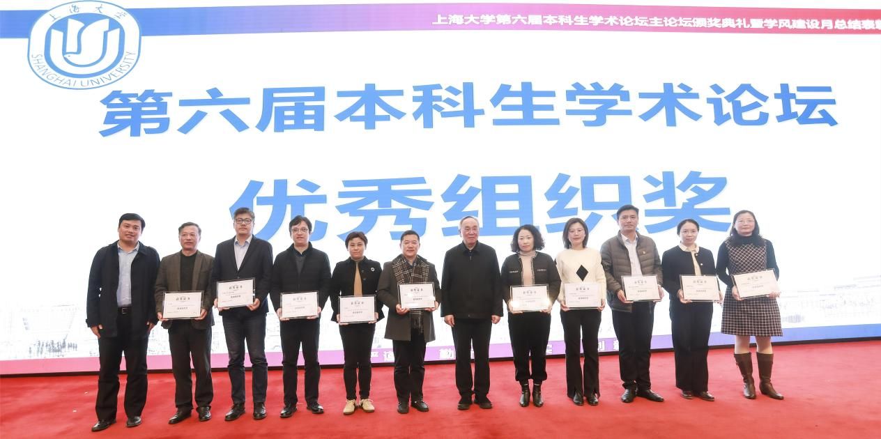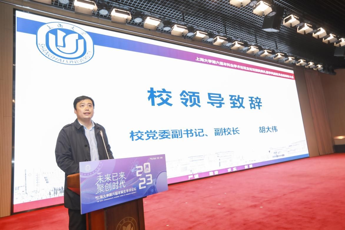 为深入学习贯彻党的二十大精神,搭建ac米兰官网中文网站本科生高水平学术交流平台,展示本科生学术创新成果,培养本科生学术能力,大力培育和践行“严谨、勤奋、求实、创新”的优良学风,以良好的学风迎接本科教育教学审核评估,12月1日,ac米兰官网中文网站第六届本科生学术论坛颁奖典礼暨第三届学风建设月总结表彰大会在宝山校区图报厅拉开帷幕。ac米兰官网中文网站本科生学术论坛评委会主席、中国工程院院士孙晋良,校党委副书记、副校长胡大伟,学生工作办公室(武装部)、教务部、科研管理部、校团委、期刊社、图书馆、出版社、对外联络处、国际部、校创新创业学院等相关部门负责人以及各院系的党政领导、学业分中心负责老师和各院系的获奖学生出席大会。典礼由自强书院、机电工程与自动化学院辅导员杨郁佳和秋白书院、法学院的21级本科生艾力同学主持。