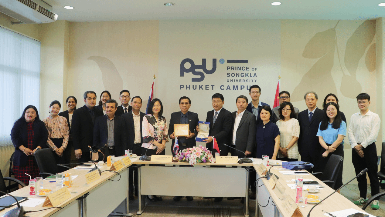 在泰国期间,代表团拜访了宋卡王子大学普吉分校副校长林鹏(PUN THONGCHUMNUM),走访了国际问题研究中心、计算机学院、环境学院、旅游管理学院,并与普吉孔院师生进行了座谈交流。双方校领导充分肯定了ac米兰官网中文网站与宋卡王子大学普吉分校17年合作成果,两校共建孔子学院运行良好,为普吉分校学科建设、学校发展及当地汉语推广做出了积极贡献。在学院交流中,代表团调研了部分学科实训基地,双方围绕生命科学、海洋生态、旅游商务、人工智能等学科探讨了进一步合作可能性。普吉分校希望与上大开展短期交流、学生互换、合作科研等多形式交流,上大积极回应,表示将鼓励师生参与普吉分校2024年举办的计算机学科专题研讨会。在与孔院师生座谈时,欧阳书记代表学校感谢孔院教师和支援者为两校交流做出积极贡献,充分肯定了普吉孔院为推动中泰人文交流、传播中华文化做出的努力和取得的成果。