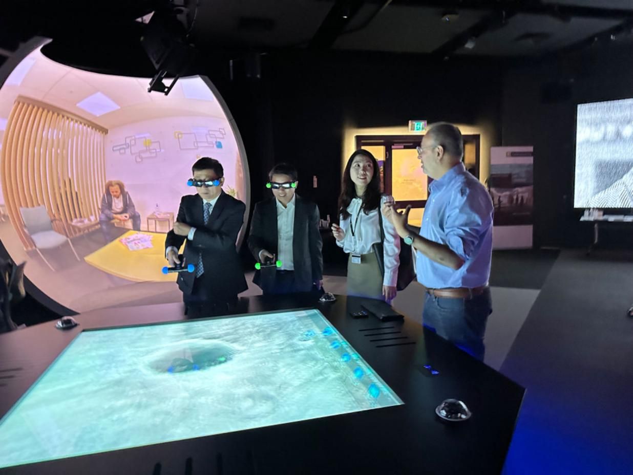 访问科廷大学期间,代表团拜会了该校教务长柯尔本(Jemery Kilburn)、全球事务协理副校长张啸天,双方简要回顾了年内科廷大学代表团两次访沪成果。科廷大学法律财金学部、人文社会学部、科学工程学部国际交流负责人与ac米兰生命科学院负责人分别介绍了学院设置、学科建设和国际化情况。双方同意进一步加深合作,推动学生交换协议尽快落地,重点聚焦设计创意、数学、材料、会计金融、运动医学等领域合作交流。随后,代表团参观了科廷大学沉浸式交互体验实验室。