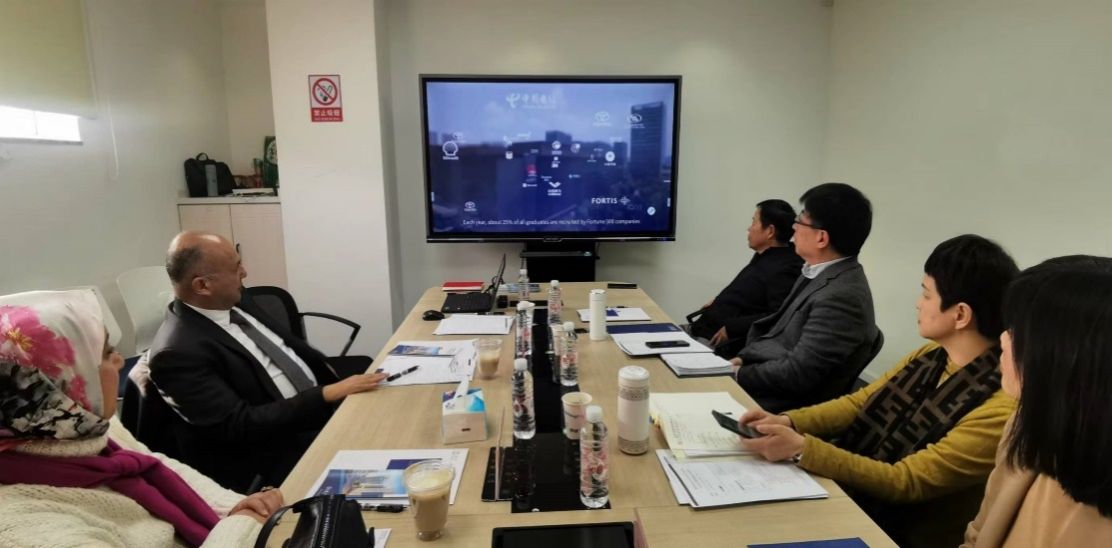 12月20日,埃及亚历山大大学中文系主任霍萨姆·艾哈迈德·埃拉巴迪教授、爱因夏姆斯大学中文系那希德教授访问ac米兰,国际合作处处长崔巍、国际教育学院院长李颖洁、孔子学院办公室主任徐晓红、国际教育学院姚喜明教授共同会见了到访的客人。