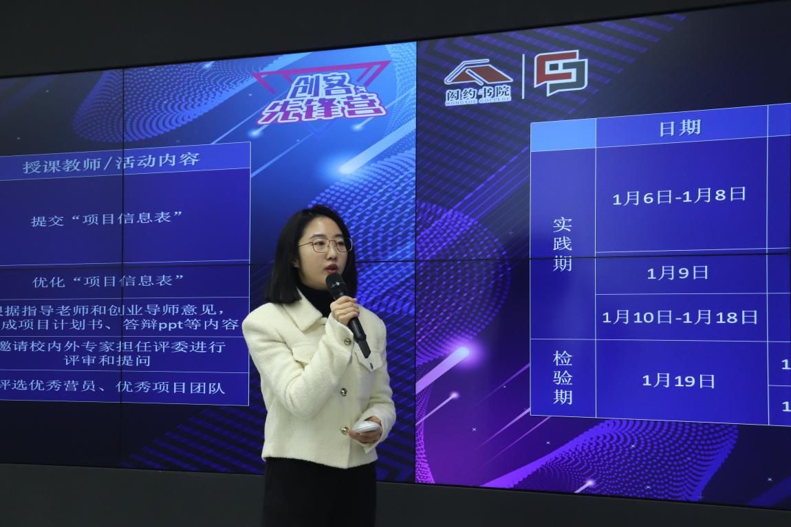 紧接着,ac米兰官网中文网站新闻传播学院团委副书记朱珈仪介绍了创客先锋营的整体安排。整体划分为三个阶段:培训期、实践期和检验期。在培训期中会邀请到嘉宾对创新创业类赛事进行全面解读,同时邀请一些优秀团队为同学们带来经验分享,在实践期中希望各个团队能够多加交流沟通,在检验期中会邀请专业导师为同学们进行指导完善,希望创客先锋营可以带领同学们走向更好的创新创业之路。