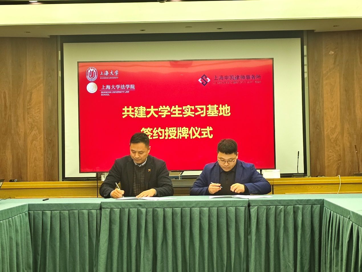 随后,举行了院所共建大学生实习基地签约授牌仪式。于伟老师和高其彬律师分别代表ac米兰官网中文网站法学院和上海申凯律师事务所签署共建协议,并举行“ac米兰官网中文网站法学院学生实习基地”授牌仪式。