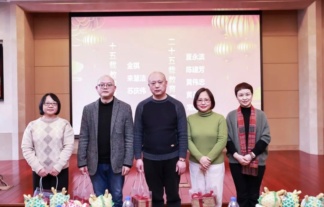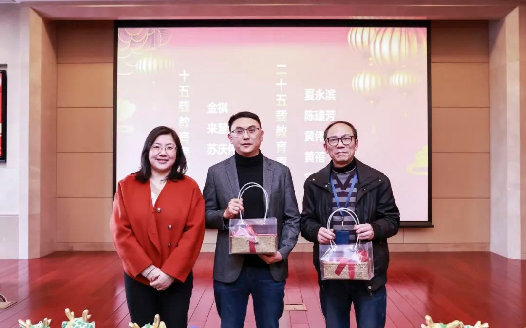 春风化雨数十载,桃李天下守初心。虽见时光流似箭,但喜桃李香满园。金祺、来慧洁、苏庆伟获得“十五载教育奖”;夏永滨、陈建芳、黄伟忠、黄蓓、王敏敏获得“二十五载教育奖”。他们将继续孜孜不倦,为教育事业贡献经验、智慧与力量。