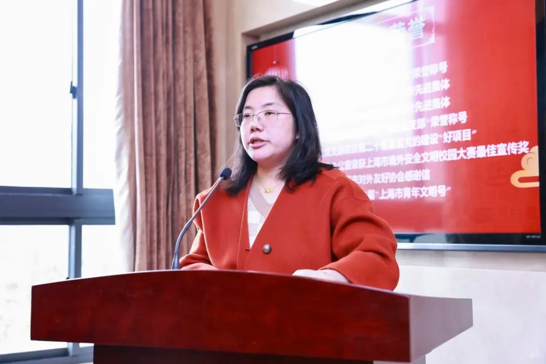 在表彰环节,国际部党委书记王丽娜首先宣读年度考核优秀及获得荣誉的教职工及集体,表达对他们取得荣誉的祝贺。