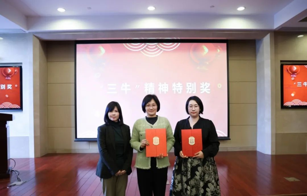 为了贯彻落实习近平总书记的关于发扬孺子牛、拓荒牛、老黄牛的精神,国际部连续三年设立“三牛精神”特别贡献奖项。2023年度,曾艳、彭亚男获得“创新发展拓荒牛”奖项;李慧、刘赛获得“人才培养孺子牛”奖项;陈颖、戎艳获得“勤恳奉献老黄牛”奖项。他们敢为人先,心系学生,踏实敬业,全力为国际部的发展拉犁耕耘、爬坡向前。