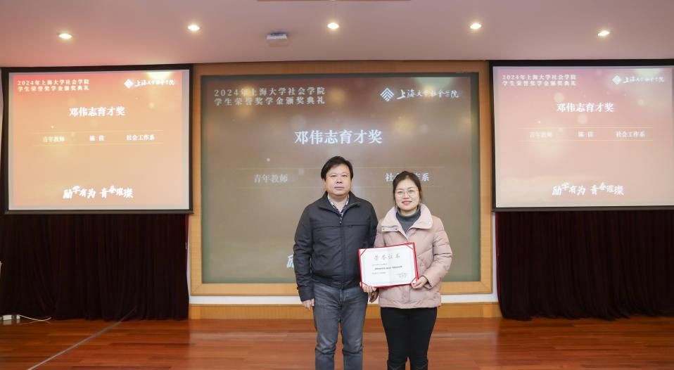 黄晓春老师为青年教师陈佳颁发邓伟志育才奖