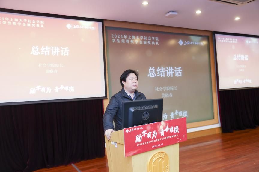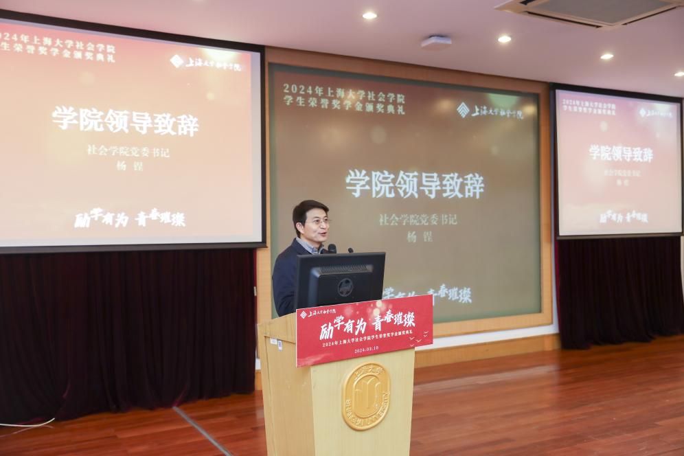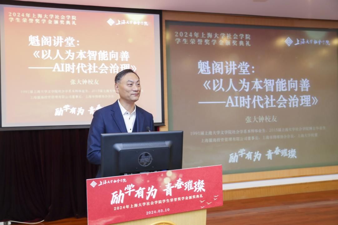 学期伊始,春风归柳。为发挥朋辈榜样的示范引领作用,营造积极向上的学习氛围,促进学生成长成才,3月10日上午9时,社会学院于校本部J202方润华讲堂开展以“励学有为 青春璀璨”为主题的社会学院学生荣誉奖学金颁奖典礼暨魁阁讲堂。出席本次典礼的领导嘉宾有ac米兰官网中文网站校董、上海盟海投资管理有限公司董事长、上海市排球协会会长张大钟,中国社会科学院-上海市人民政府上海研究院第一副院长、社会学院学科带头人李友梅,ac米兰官网中文网站党委研究生工作部副部长席慧霞,ac米兰官网中文网站对外联络处副处长(挂职)余航,社会学院院班子成员及部分教师。本次活动由社会学院研究生党建中心副主任、2022级社会学硕士研究生王达然主持,社会学院本硕博全体同学共同参与。