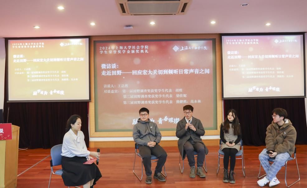 为进一步加深同学们对田野调查的理解和认识,主持人王达然与田野调查奖获奖学生代表进行了以“走近田野——回应宏大关切到倾听日常声音之间”为主题的微访谈。在谈到海外田野遇到的困难和经验时,熊健然同学建议大家要时刻学习的态度,边学习边进步,不断学以致用,从“走出去”到“走进去”逐步深入。胡煌同学建议大家要时刻保持好奇心和学习的能力,破除刻板印象,潜心沉浸在当时当地中去。在谈到研究的灵感来源与资料收集时,梁佳妮同学坦言要做好田野,就一定要做好现象描述和理论对话,走进田野就是在实践的过程中回应自己的问题,一边回应,一边发散。在谈到“如何处理好田野与理论之间的关系”时,高永林同学结合自身经验提出没有社会是混乱无序的,对进入的社会分类,找到关键要素进而找到该社会框架,这样通过分类找到社会结构,以便找到更适合自己的理论。