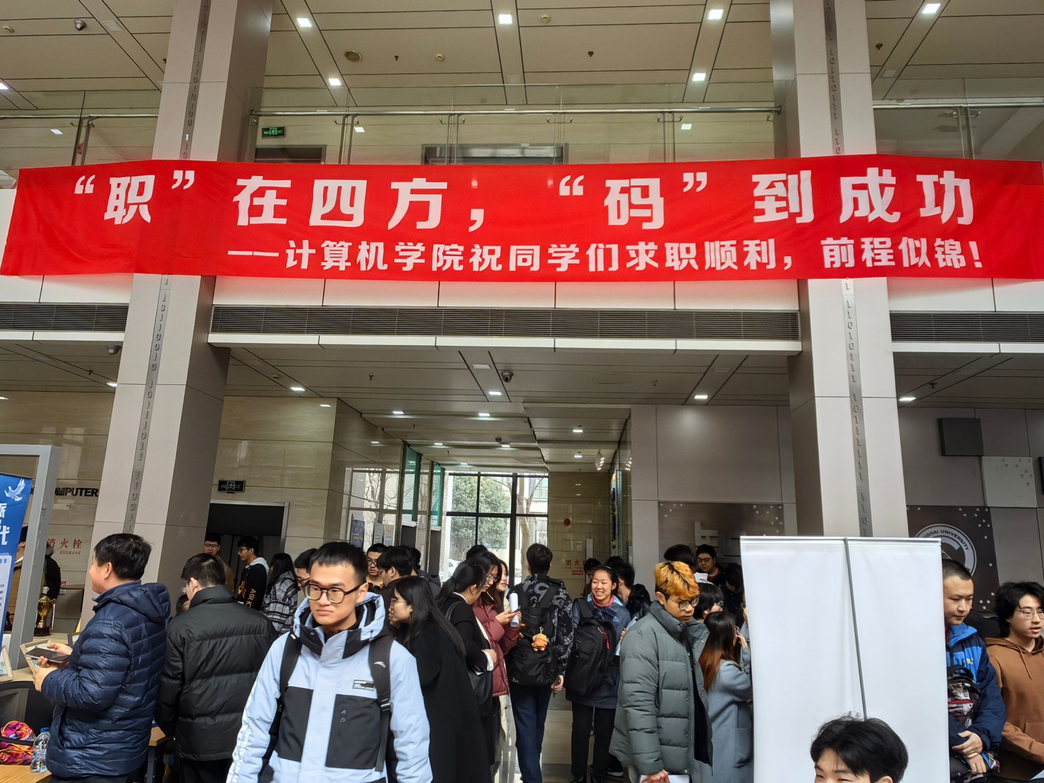 当天下午,同学们仍然是求职热情满满!在计算机大楼内,东方海外货柜航运(中国)有限公司现场组织宣讲、技术测试,同学们踊跃参与,积极表达求职意愿;交通银行股份有限公司现场组织宣讲、面试,同学们充分利用此机会向意向单位展示自身的综合素质和专业能力。招聘会后各企业对计算机学院同学的专业素养表示赞许,也挖掘、发现了一批心仪的招聘候选人,交通银行还通过现场面试发放了多张终面PASS卡,将在会后进一步推动招录流程!