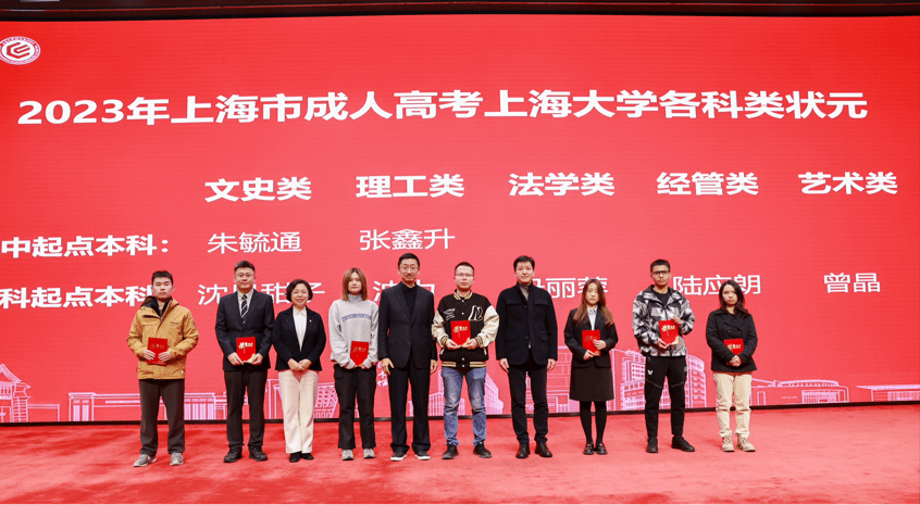 本次新生开学典礼对2023年上海市成人高考ac米兰官网中文网站各科类状元进行了表彰。苟燕楠总会计师、邓江书记、周丽昀院长为同学们颁发新生奖学金并授予校徽。