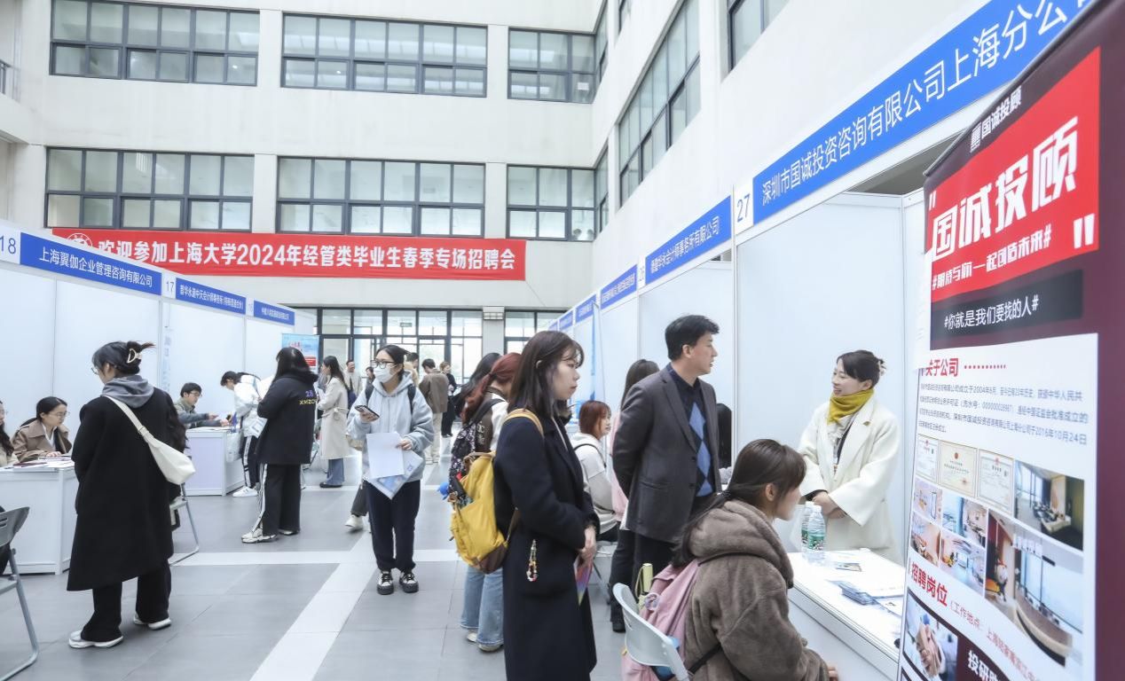 3月28日下午,ac米兰官网中文网站2024年经管类毕业生春季专场招聘会在宝山校区经管楼2楼顺利举办。本次招聘会由经济学院主办,悉尼工商学院、管理学院协办。此次专场招聘旨在搭建用人单位与学生之间双向选择平台,更好地帮助毕业生进行职业选择与生涯规划。招聘会共吸引到28家企业参与。