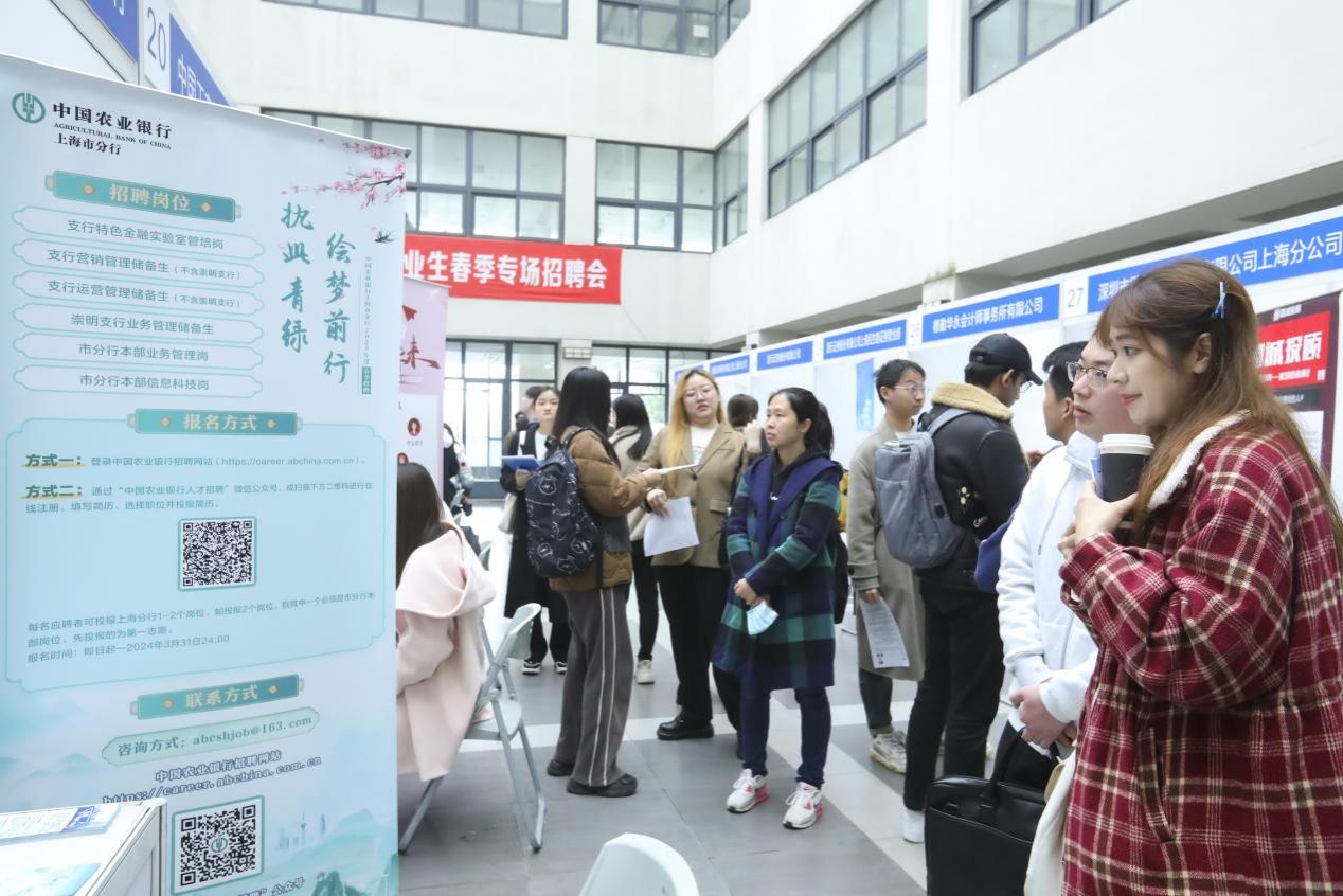 下午一点整,本次招聘会在经管楼2楼正式开始。各参会单位齐聚现场,同学们在各展位前积极展示自己的专业能力与综合素养。此次招聘会涵盖银行、证券、保险、会计师事务所、先进制造和管理咨询等多个领域,包括中信证券股份有限公司上海分公司、新华人寿保险股份有限公司上海分公司、普华永道中天会计师事务所、德勤华永会计师事务所、厦门国际银行上海市分行、中国农业银行股份有限公司上海市分行、上海城建城市运营(集团)有限公司等世界500强企业及行业标杆企业,提供多种岗位如管培生、投资顾问、交易研究、审计、财务管理、人力资源等。此外,招聘会还为非应届毕业生提供了部分实习岗位。