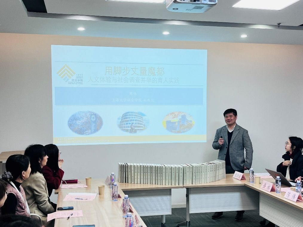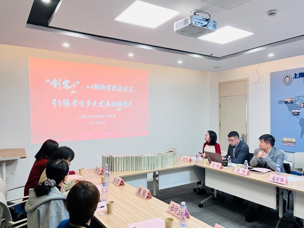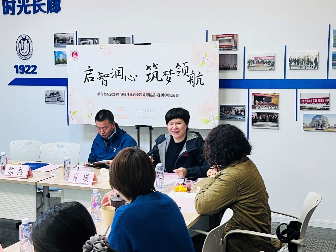在本科生全程导师代表进书院精品项目中期汇报交流环节中,全程导师们围绕自身导师项目展开深入交流。对外联络处陈然以《溯源百年·传诵青春——老上大校友后人寻访系列活动》为题,回顾校史、展望未来,指出百年上大红色学府的历史需要上大人赓续传承,传播红色校史,需要把握历史脉络,搭建多方平台、创新宣传形式,这样百年校史才能更好地在新时代被铭记,散发新的活力。社会学院陈伟以《用脚步丈量魔都:人文体验与社会调查并举的育人实践》为题,展示他和学生一起通过“city walk”的新潮方式开展更“接地气”的社会实践的经验。党委宣传部韩晓霞以《促进导学和谐互动,构建育人共同体——红色文化育人模式进书院的探索实践》为题,深入分析了大一新生对于ac米兰官网中文网站红色根脉的了解现状。招就处侯文婷以《就业背景下生涯教育融入书院人才培养的实践探索》为题,分享了基于学生专业进行的职场探索经验,力在提升学生的专业感知度、价值认同度和职场适配度。法学院岳林以《法律与科幻文学读书会》为题,探讨办好书院读书会不仅需要前期充足的阅读准备与宣传,更重要的是适当运用激励机制鼓励积极参与者,同时也要根据读后总结和成员反馈情况,适时调整阅读策略和计划安排。社会学院赵宇阳以《润心育心、向阳而生》为题,分享了自己以“改变偏见、提升个人心理健康状况、增强个人抗压能力和解决问题的能力”为核心开展的多样化活动。新闻传播学院朱珈仪以《创客+:打造社区创新实践育人新空间》为题,分享了提升学生科创能力的实践育人经验。