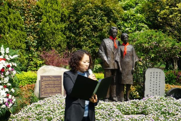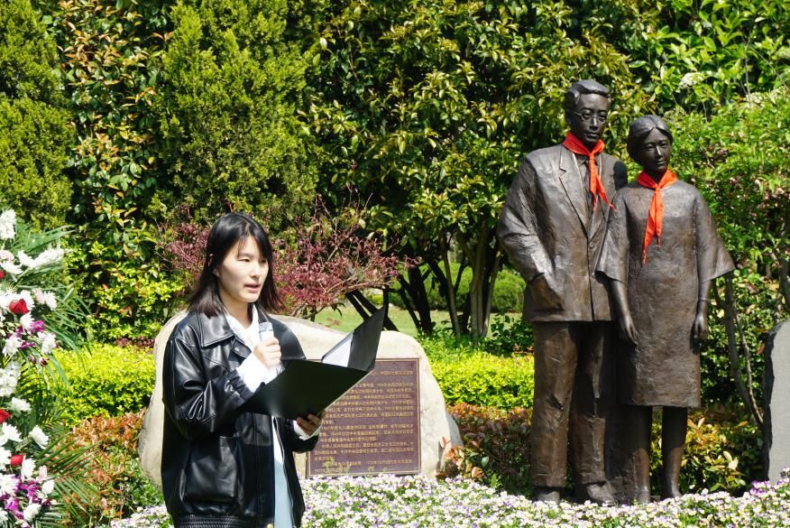纪念仪式庄重而深沉,全体人员在瞿秋白同志雕像前默哀并三鞠躬,以示缅怀与敬仰。本科生党员代表上前擦拭墓碑,党员们向革命英烈敬献鲜花,鞠躬默哀。