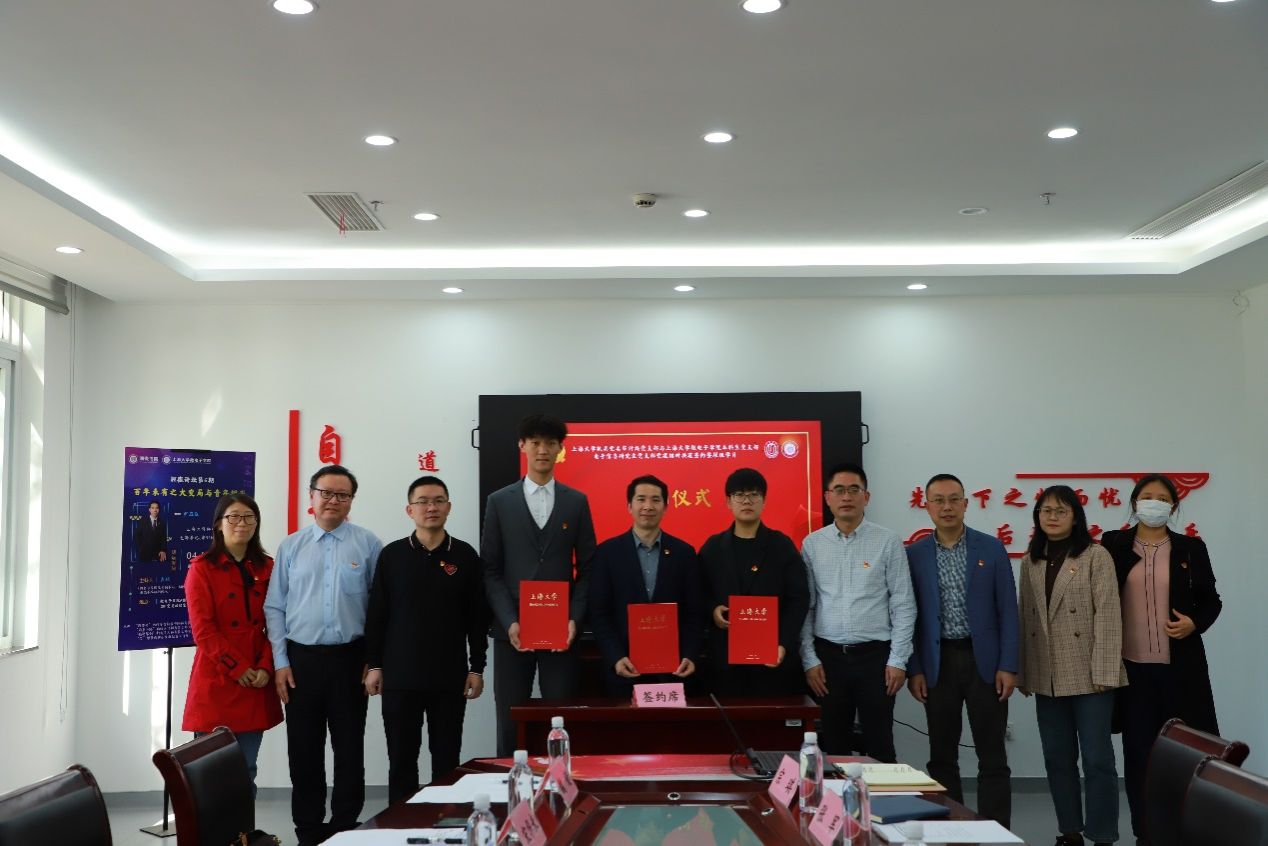 审计处党支部书记尹应凯与微电子学院本科生党支部书记宗琪、微电子学院电子信息研究生党支部书记俞浩作为三方代表,现场签署了党建结对共建协议。