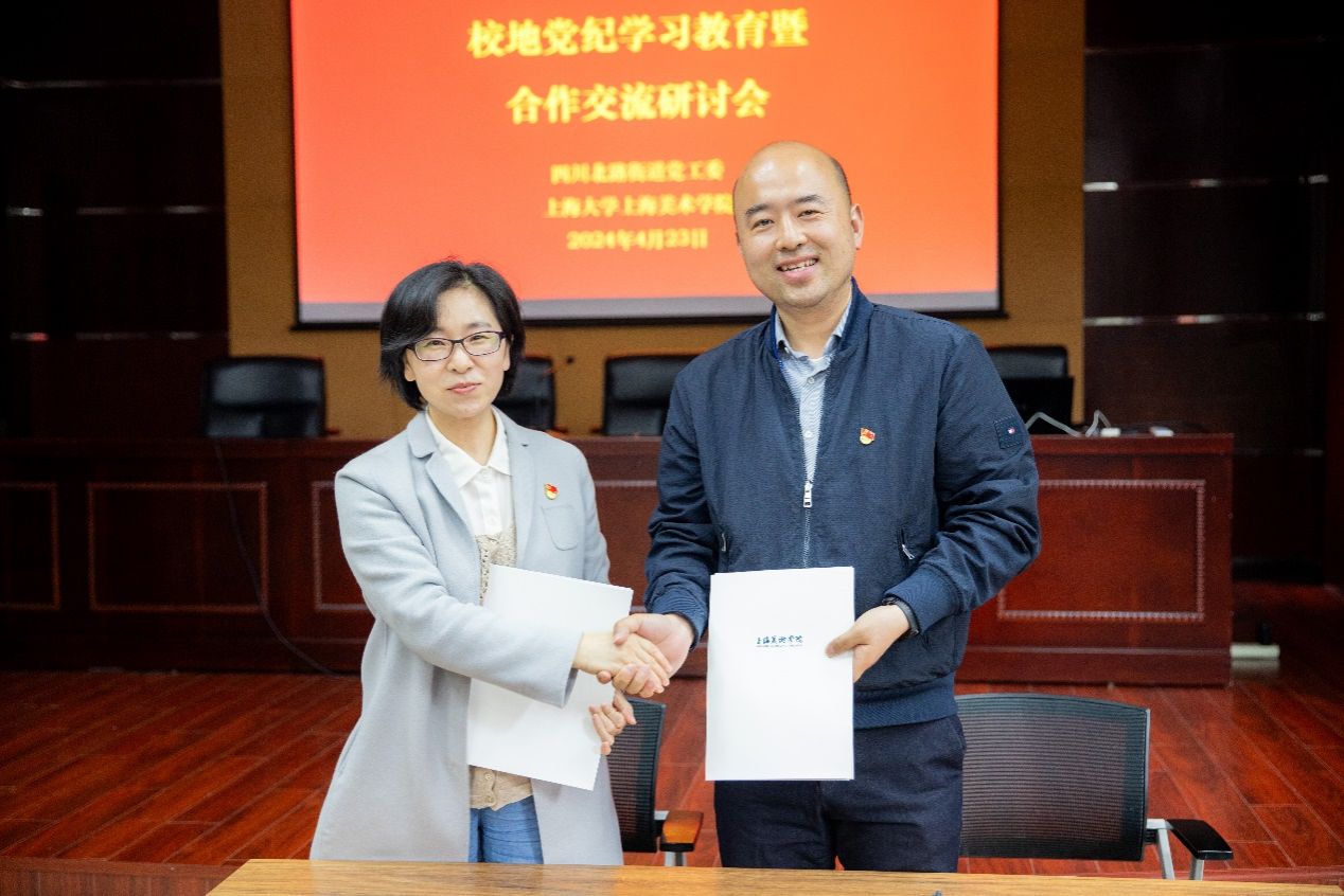 为了进一步发挥党建引领作用,建立长效联组共建机制,深化产学研合作成效,上海美术学院党委与四川北路街道党工委现场签订了联建共建协议。完颜丽敏、曹俊代表双方签署了合作协议。双方将持续开展深度合作,为四川北路街道的“强能级、提能效、添动力、优品质”不断打造新的成果,开拓校地合作、共建共享的新局面。