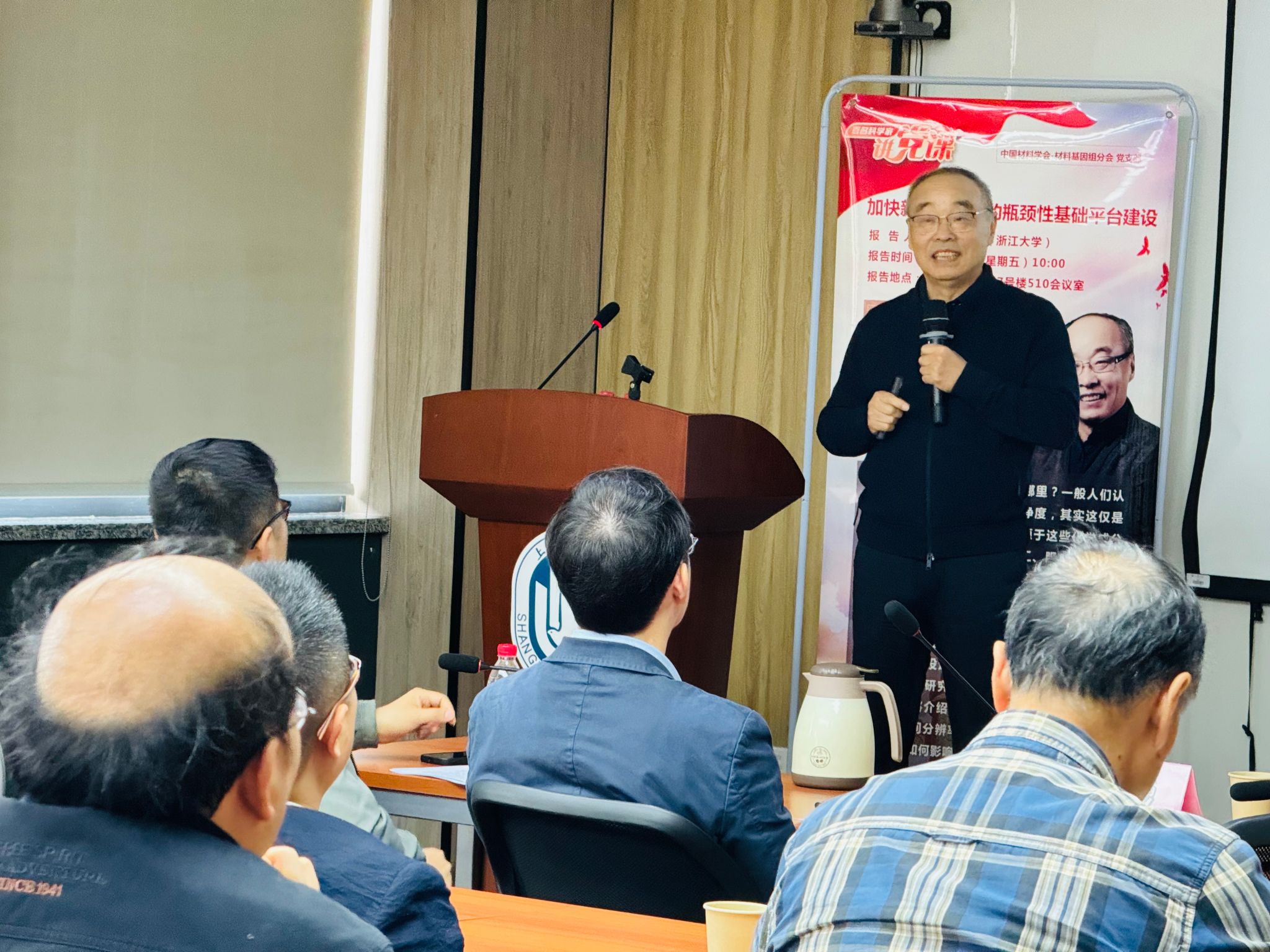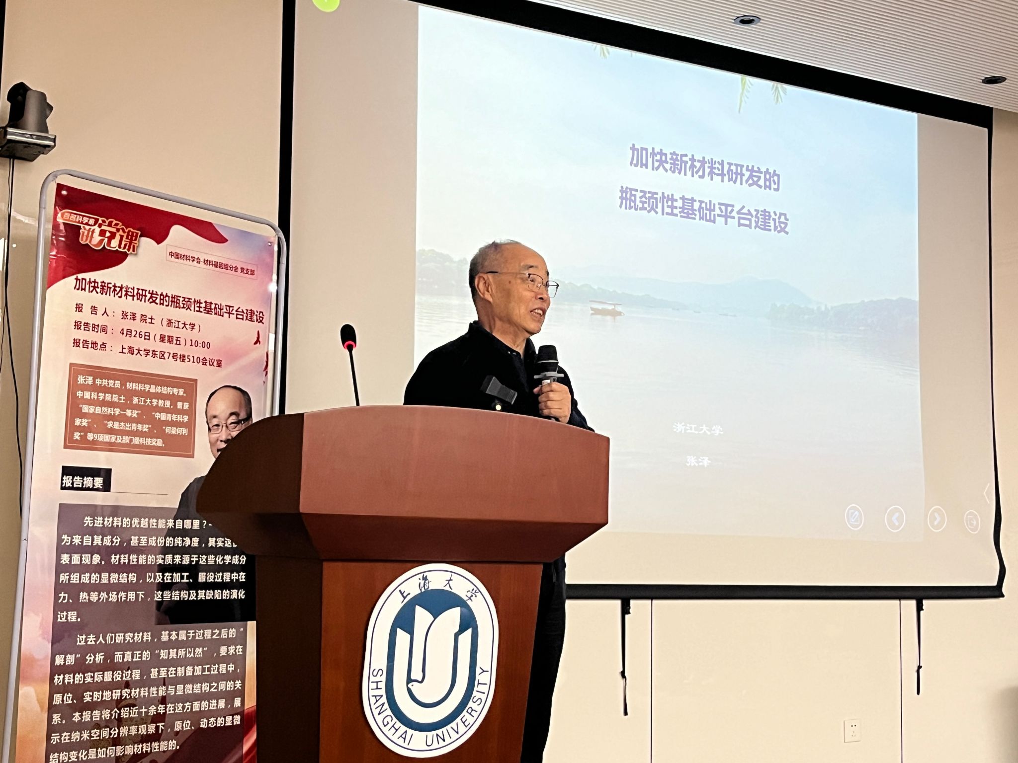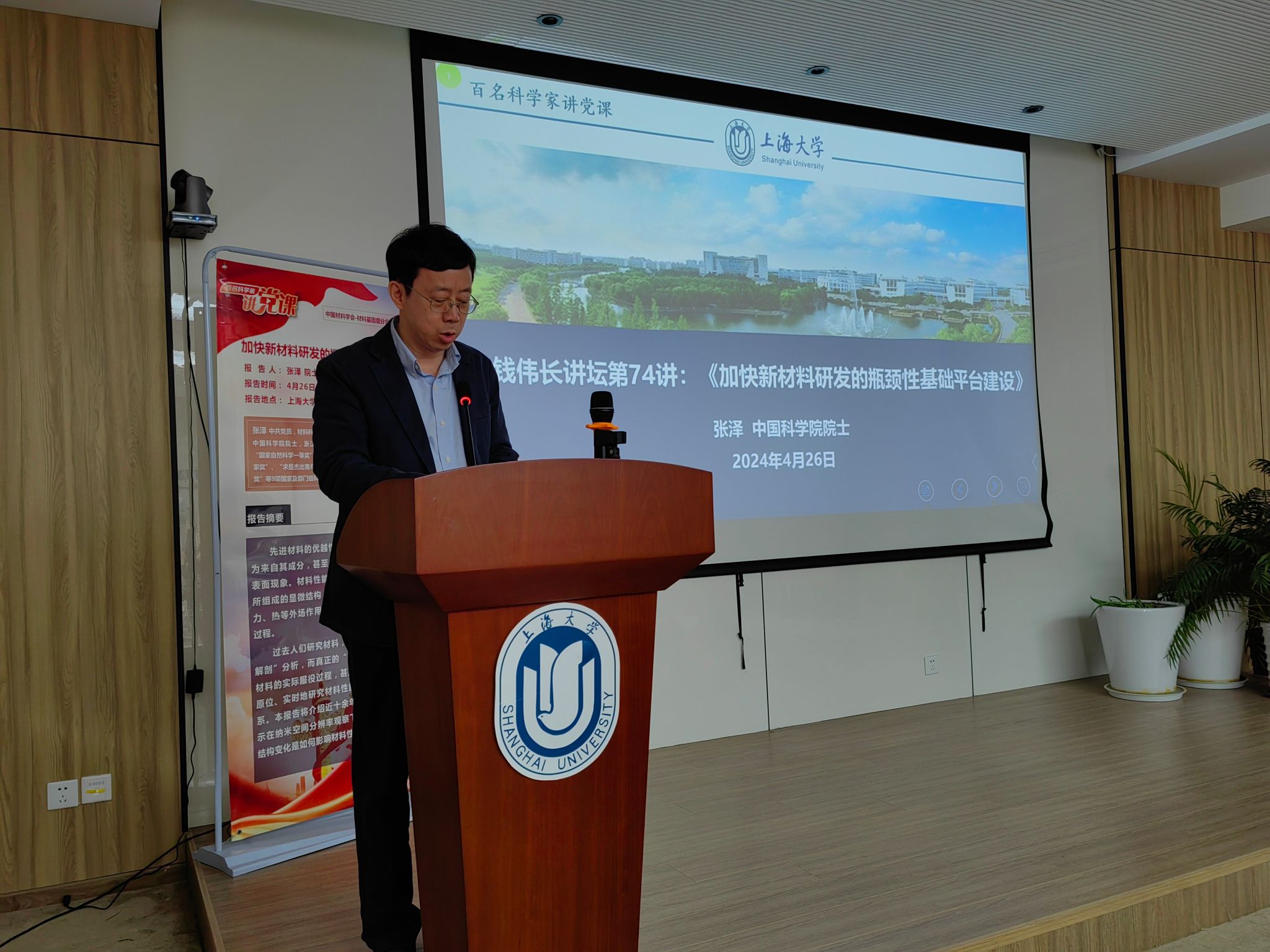 4月26日上午,钱伟长讲坛第74讲暨中国材料学会材料基因组分会“百名科学家讲党课”活动开讲仪式、第一讲《加快新材料研发的瓶颈性基础平台建设》在ac米兰官网中文网站宝山校区东区七号楼510会议室顺利举行。中国科学院院士,浙江大学材料科学与工程学院张泽教授应邀作主题报告。报告由校党委副书记、纪委书记段勇教授主持。报告吸引了来自钱伟长学院、材料基因组工程研究院、材料学院、理学院、微电子学院等单位的师生参与。