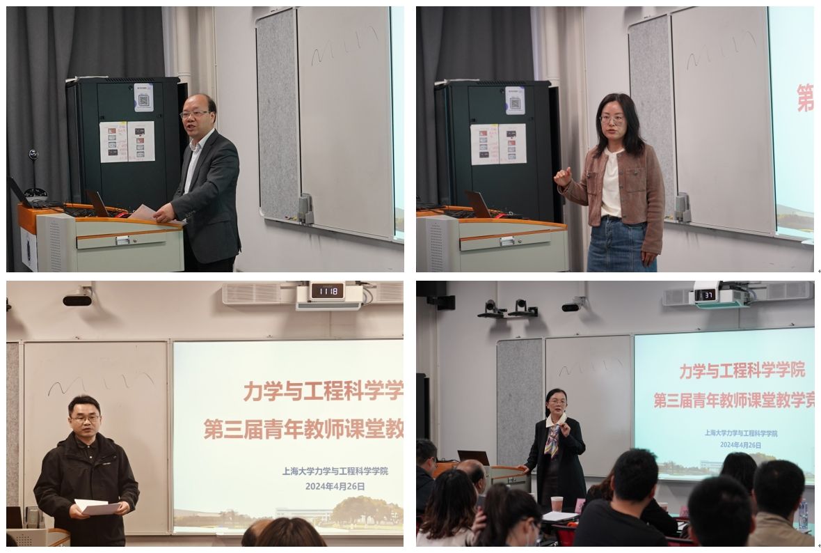 为进一步锻炼青年教师教学基本功、加强师德师风建设,庆祝上海市应用数学和力学研究所40周年,4月26日上午,ac米兰官网中文网站力学与工程科学学院在土木楼404会议室举办了学院第三届青年教师课堂教学竞赛。学校教务部副部长辛明军作为特邀嘉宾出席,学院副院长任重主持,力学系和土木工程系6位青年教师参赛讲课。竞赛邀请了第六届全国高校青年教师教学竞赛工科组一等奖(第1名)获得者上海交通大学高晓沨教授,上海第二工业大学数理与统计学院副院长高美娜教授,力学与工程科学学院张俊乾教授、秦爱芳教授、宋亦诚教授担任专家评审,10名学院本科生担任学生评审。
