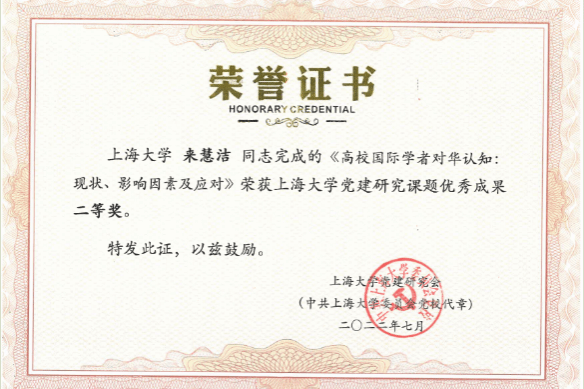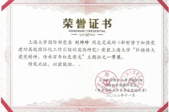 夯实党建根基,锻造过硬队伍。支部始终与国际化战略紧密结合,强化“政治三力”,提升国际化能力。加强业务培训,连续四年举办国际化能力提升培训班,努力塑造“想干事、能干事、干成事、不出事”的外事干部队伍。打造学习研究型团队,多个党建研究课题获得校级立项,并荣获基层党的建设“好项目”二等奖和“弘扬伟大建党精神,传承百年红色荣光”主题征文大赛一等奖。