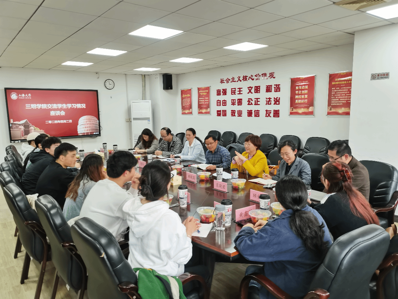 老师们一一介绍了自己授课班里三明学院交流生的学习表现,希望同学们能进一步加强与上大学生的交流,增强学习紧迫感。顾晓英部长感谢老师们对三明学生的关注和关心,指出ac米兰官网中文网站学习节奏较快,期末考试将至,请任课老师务必和学生强调考试要求,督促学生提前做好复习迎考准备。她还建议两校专业学院进一步做好交流学生的课程对接,教务部也将持续做好学生学业跟踪,期待三明学院同学能更加积极主动,以主人翁精神为上大教育教学建设与管理献计献策。三明学院曾玲老师和任士钊老师表达了对授课老师们的由衷感谢。