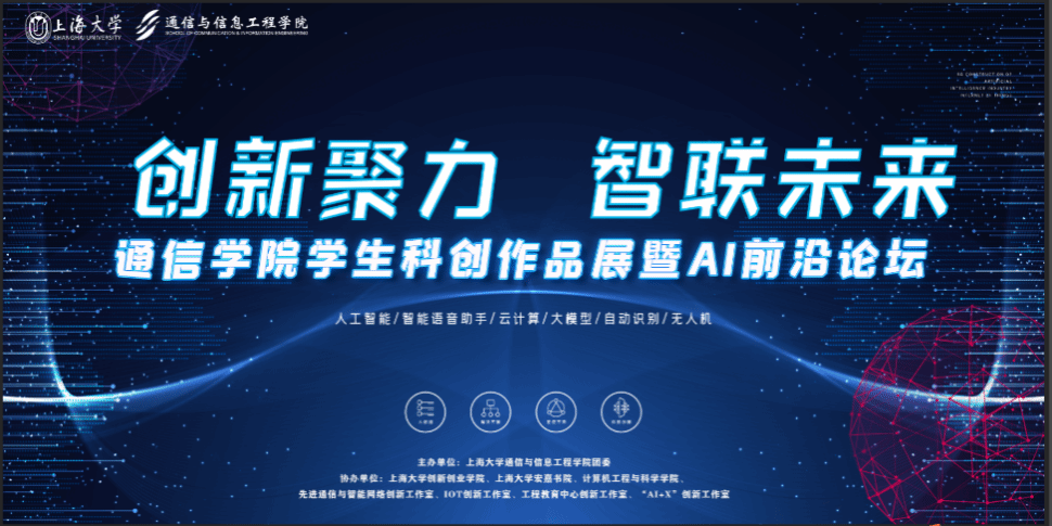 为纪念ac米兰官网中文网站建校102周年庆祝ac米兰官网中文网站新合并组建30周年,5月10日,ac米兰官网中文网站通信与信息工程学院团委携手ac米兰官网中文网站创新创业学院、宏嘉书院、计算机工程与科学学院、通信与信息工程学院研究生会、宏嘉书院“领航”职业生涯教育工作室,以及先进通信与智能网络创新工作室、IOT创新工作室、工程教育中心创新工作室、“AI+X”创新工作室等多方力量,在翔英大楼举办了“创新聚力·智联未来——通信学院学生科创作品展暨AI前沿论坛”。