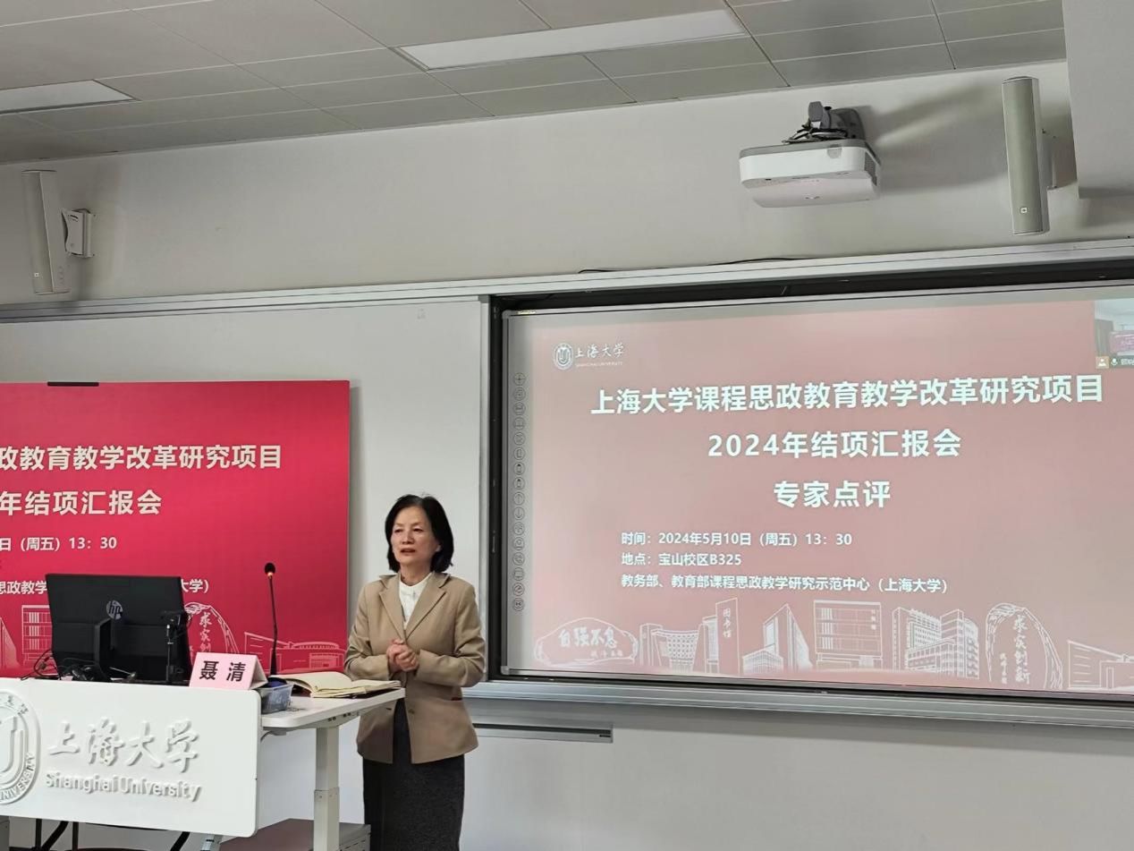 5月10日,ac米兰官网中文网站于宝山校区B325举行2024年课程思政教育教学改革研究项目结项汇报会。校党委常委、副校长聂清与会并致辞。教务部副部长、课程思政教学研究中心负责人顾晓英教授担任主持。数十名来自各学院的教师线上线下观摩。