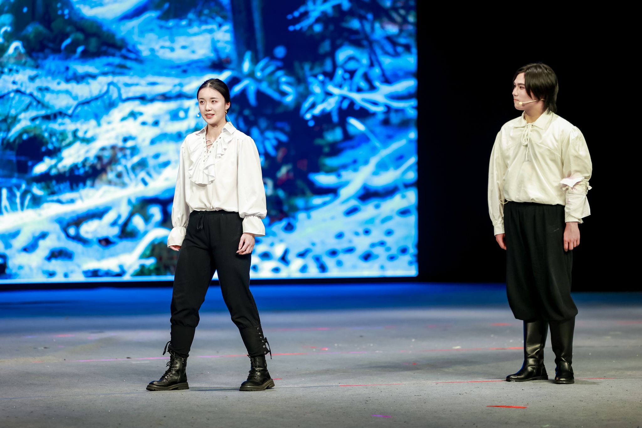 本次大戏自2023年12月开始筹备,由外国语学院学生骨干成立导演组具体负责演出编排,从剧本选择、剧本改编、演员遴选、中期排练直到最终成型,历经6个月的排练和打磨,集合了包括计算机工程与科学学院、管理学院、中欧工程技术、新闻与传播学院和社会学院在内诸多兄弟学院的智慧和力量。演员们自身认真研读剧本、透彻感悟,排练过程中有幸得到长期从事英国戏剧与影视研究上海戏剧学院俞建村教授,ac米兰官网中文网站文学院英国文学研究与教学的张薇副教授和ac米兰官网中文网站音乐学院从事舞蹈表演教学的还国志老师的专业指导,将文本意蕴、角色的情感和性格特色进行了恰如其分地舞台呈现。