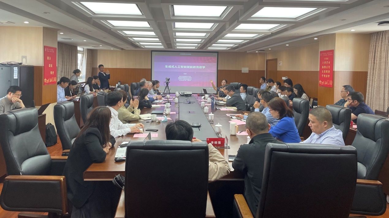 为进一步推进教育教学改革,探索基于人工智能的教育教学新路径,5月16日上午,教务部在宝山校区行政楼501组织举办“生成式人工智能赋能教育教学”专题报告会。本次报告会邀请教育部在线教育研究中心秘书长、清华大学在线教育中心主任、世界慕课与在线教育联盟秘书长汪潇潇来校作专题报告。会议通过线上线下方式开展,校党委常委、副校长聂清,教务部常务副部长彭章友,教务部副部长辛明军、顾晓英、杜晓庆,学堂在线教学服务中心商务总监王丹丹,各学院教学副院长及其他教师代表等五十余人参加线下会议;学校各级各类一流课程、重点课程团队教师及其他参与本科教学改革和课程建设的100余名老师参与线上会议,报告会由彭章友主持。