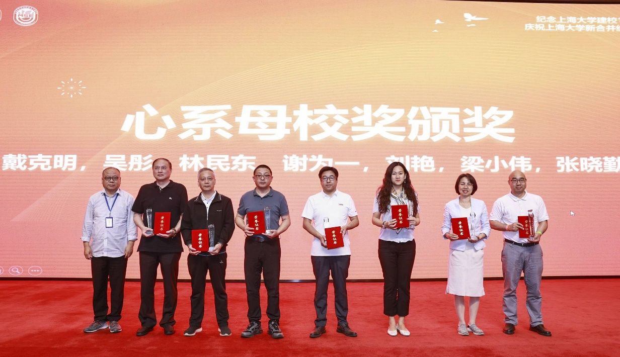 为表彰和激励校友们为母校的发展贡献自己的力量,加强校友与母校之间的联系和合作,学院还特设“心系母校奖”,为共同推动母校的发展和繁荣的校友颁奖。戴克明、吴彤、林民东、吕峰、谢为一等五位校友获“心系母校奖”,材料学院党委副书记、纪委书记刘文庆老师为获奖校友颁奖并合影留念。