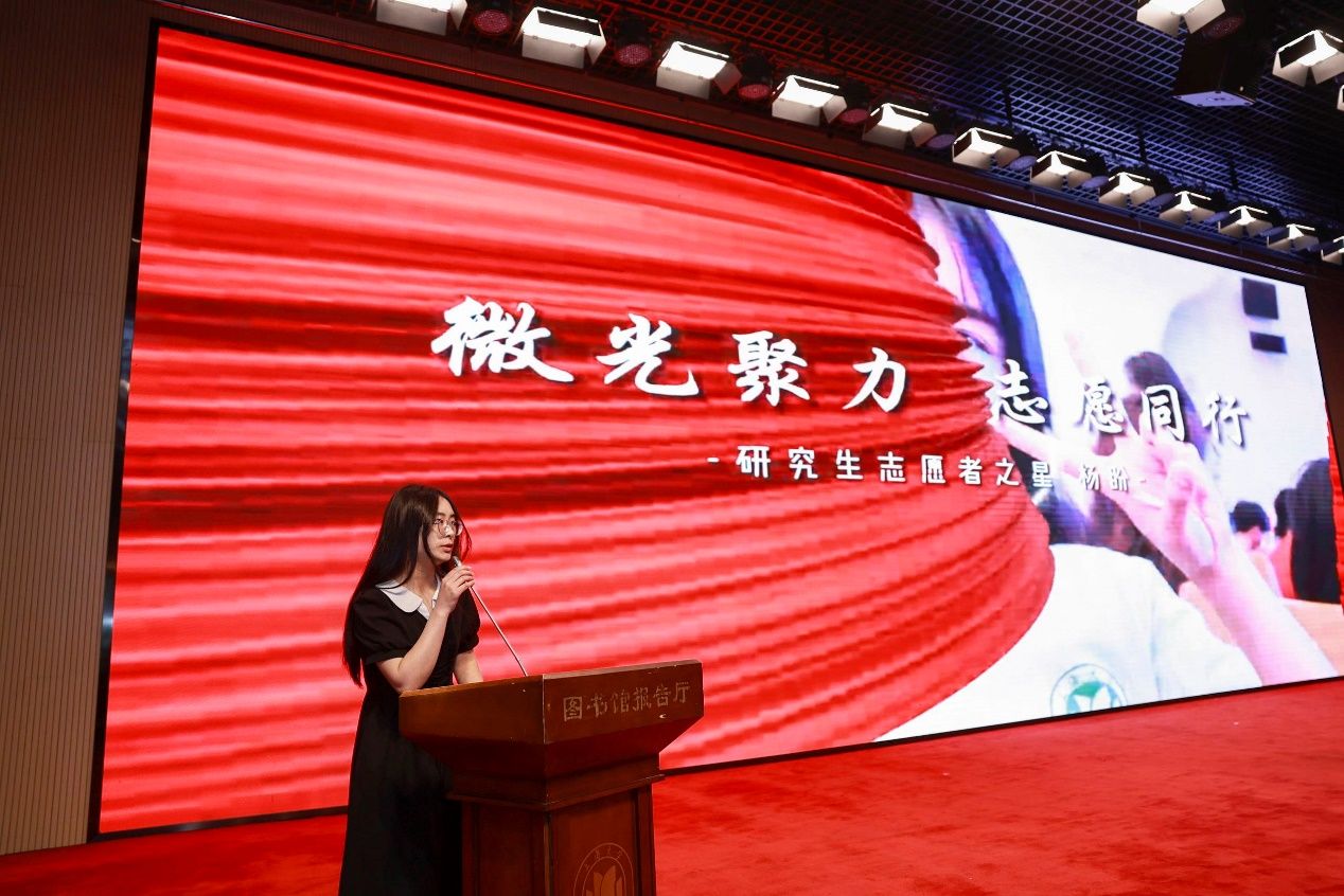 ac米兰官网中文网站第二十届研究生十佳歌手冠军柳亦晨同学开场为大家带来歌曲《落叶归根》,欢迎广大校友回家,点燃现场气氛。