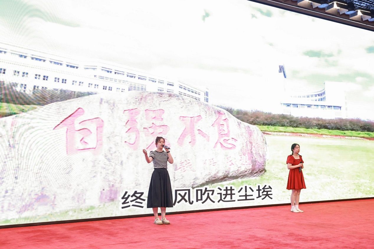 电子系研究生倪端颖同学和张巍同学一起合唱《星辰大海》,伴随着“我向你奔赴而来,你就是星辰大海”的歌声,返校日活动进入尾声。优美的旋律响彻会场内外,一声声振奋的歌词里,更是校友们对学院、对母校无限的留念与希冀。