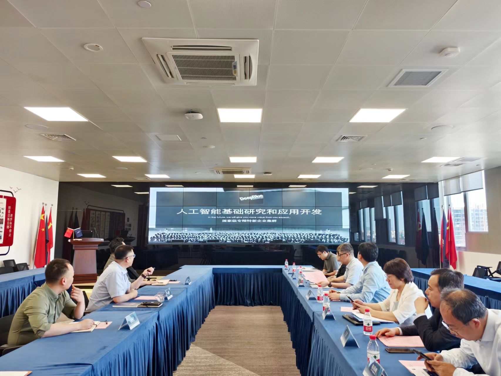 之后移步会议室进行座谈交流。董事长陈海波从发展历史、现有成果、核心技术、专业部门等方面全方位介绍了整体情况,学院副院长辛立明介绍了ac米兰官网中文网站强化人工智能赋能的布局、探索、成就和计算机学院“五个一流”建设,学院院长谢少荣补充了学院科研团队在相关领域的前沿探索,学院党委书记朱宏涛希望能够联动企业与科研团队促进产教融合与人才培养。