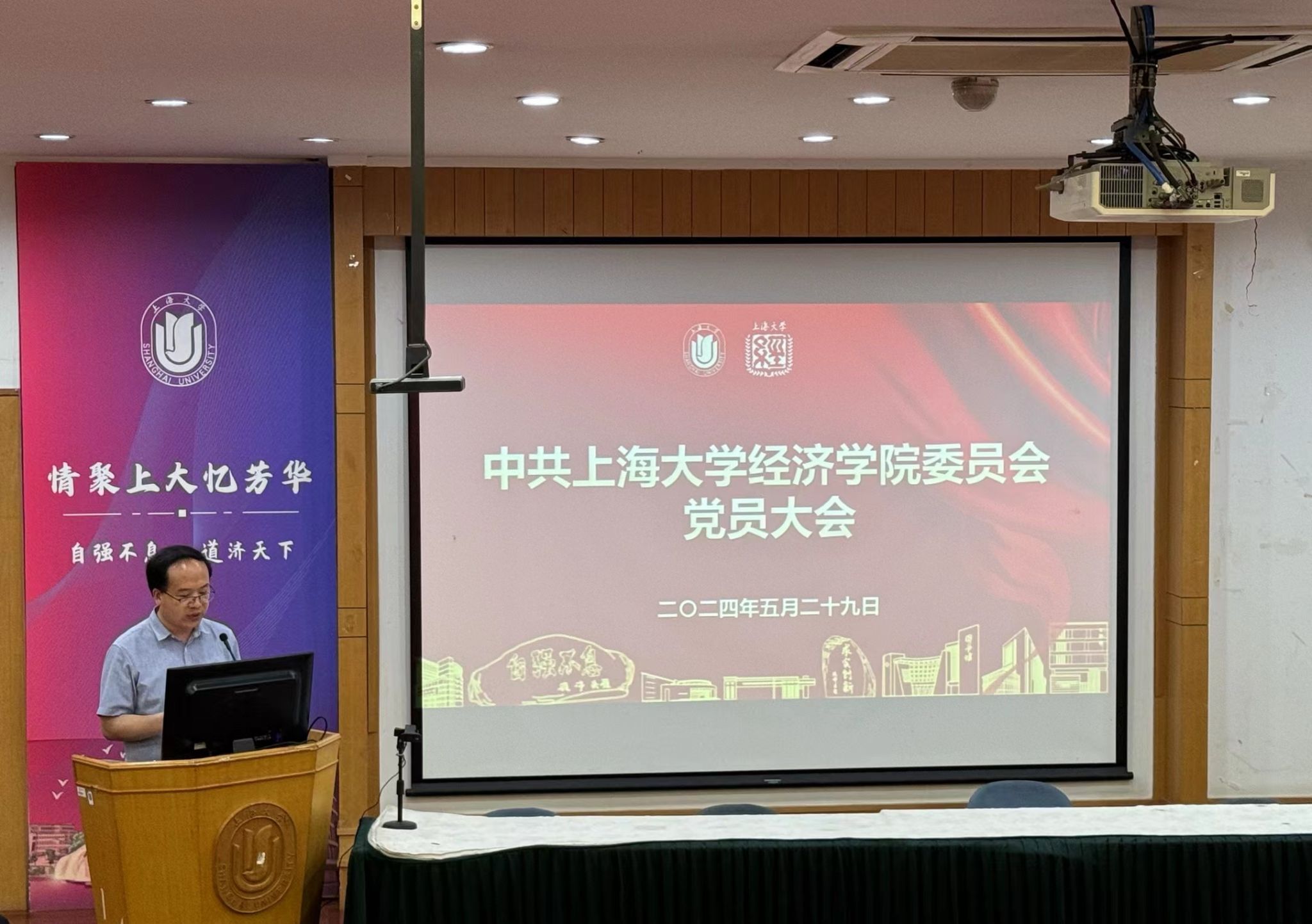 5月29日下午,经济学院在J103教室召开学院党员大会选举出席ac米兰官网中文网站第四次党代会代表。校党委组织员黄谷列席会议,党委副书记、常务副院长殷凤,党委委员、副院长刘康兵,党委委员、挂职副院长周思,党委委员、产经中心副主任谭静等全体师生党员参加此次会议。本次会议由经济学院党委副书记、副院长冯玉鑫主持。