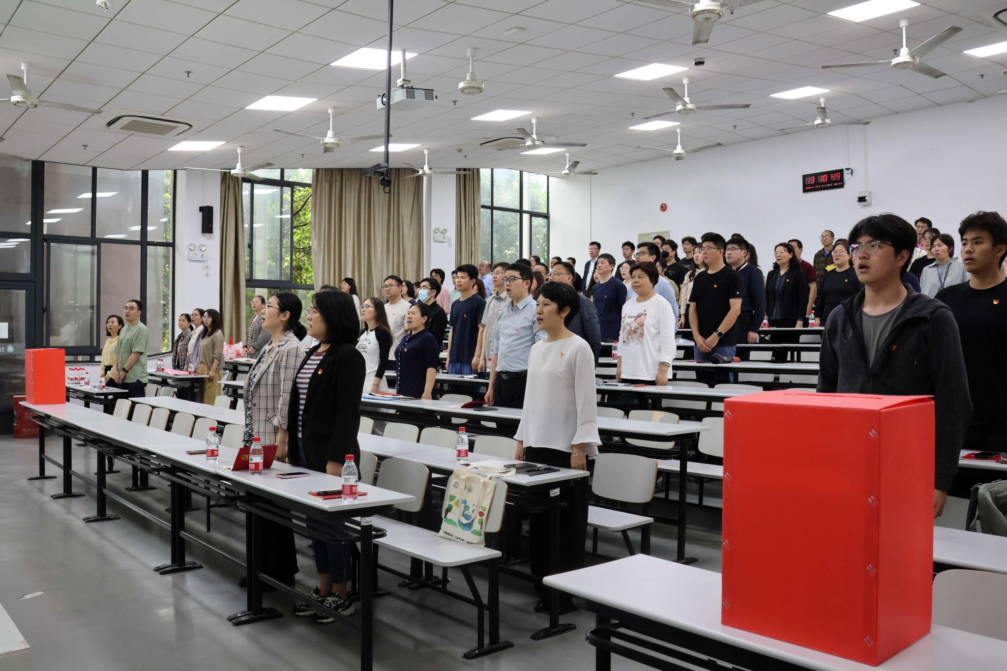 钱冬英首先宣读了校党委的有关批复,并宣布党员代表大会正式开始。与会党员全体起立唱《中华人民共和国国歌》。