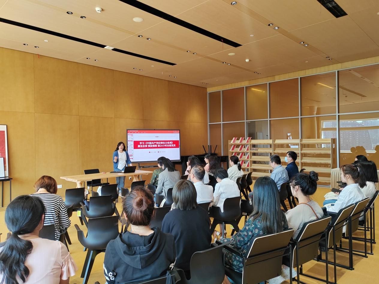 为深入学习贯彻习近平总书记关于党纪学习教育的重要讲话和重要指示批示精神,扎实推进党纪学习教育,引导全体党员进一步强化纪律意识和规矩意识,始终做到以实际行动践行忠诚、干净、担当的政治品格,5月29日下午,国际部党委书记王丽娜面向全体党员,讲题为“学习《中国共产党纪律处分条例》,廉洁自律、慎独慎微,做24小时合格党员”的专题党课。