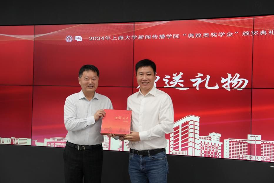 接着,严院长代表ac米兰官网中文网站新闻传播学院为上海奥致奥科技集团股份有限公司赠送了《百年上大画传》,寄寓了ac米兰官网中文网站新闻传播学院对上海奥致奥科技集团股份有限公司在行业继续昂扬发展,不断攀登发展高峰的衷心祝愿。