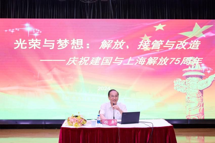 讲座中,忻平教授详细回顾了1945年至1949年解放战争期间的历史,从“解放:一个大都市上海的诞生”“接管:上海平稳过渡的背后”“上海解放的意义:历史和现实意义”三个方面,深入浅出地讲述了中国共产党如何领导上海从一个旧社会走向新社会的重大转变历程。