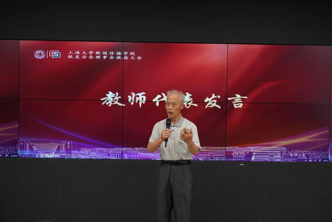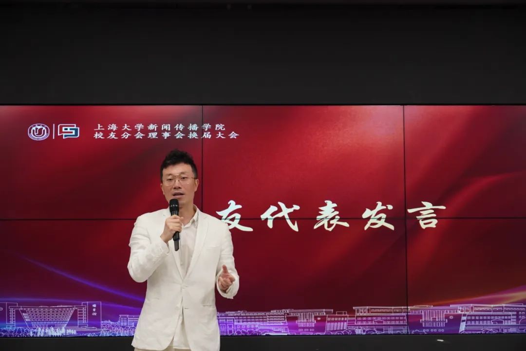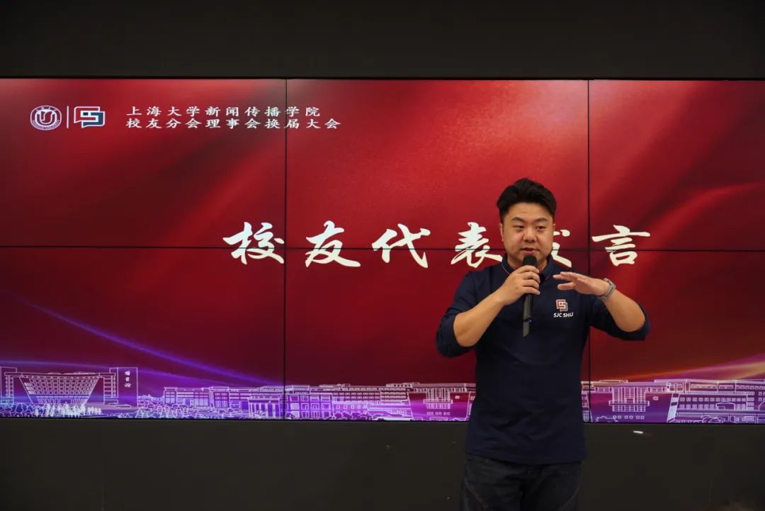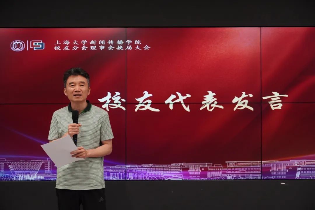 校友代表、校友分会常务理事杨俊表示,作为上大新传校友,既是荣誉,也是责任。学院在今天取得的飞速发展,于校友而言也是莫大的荣耀。在当今社会中,因校友身份而构建的认同感、信任感更显弥足珍贵。希望各位校友在今后能够更为全面地参与学校、学院校友工作建设。