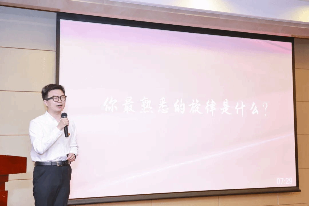 音乐学院研究生党员张琢靖通过民歌《苏区干部好作风》中的“苏区干部好作风,自带干粮去办公,日着草鞋干革命,夜打灯笼访贫农”等歌词生动讲述主人公刘启耀的故事,强调清正廉洁的作风。