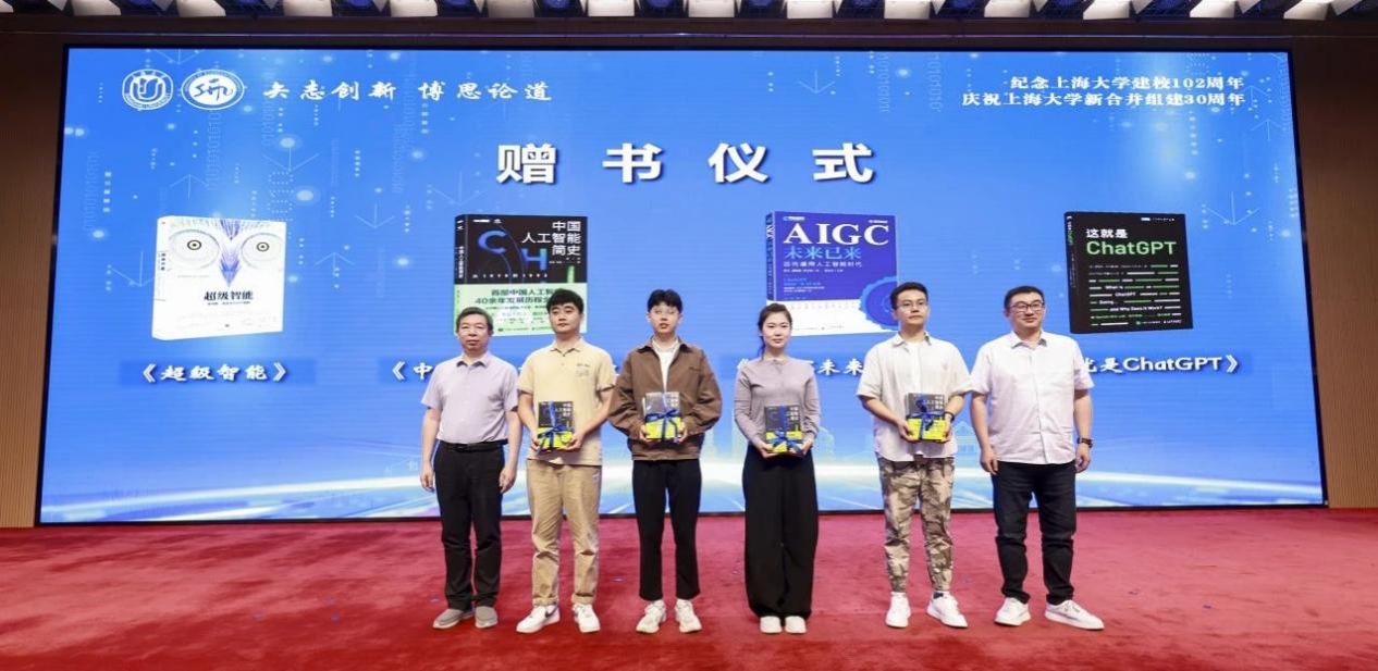 ac米兰官网中文网站党委常委、党委宣传部部长曾军老师,上海市科协常委、上海交通大学博士生导师、深兰科技创始人、董事长陈海波老师为博士研究生代表赠书,鼓励各位研究生再接再厉,在自己的研究领域深入耕耘,脚踏实地地做出独具特色的高质量研究,在迅速发展的人工智能时代中更好地把握机遇、迎接挑战。