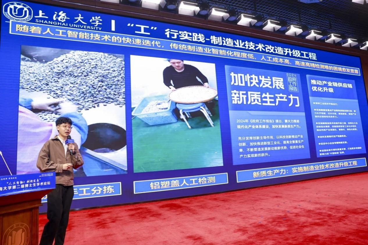 “人工智能+”高端制造创新发展平行论坛在宝山校区举行,论坛由材料科学学院主持,与机电工程与自动化学院、微电子学院、力学与工程科学学院、材料基因组工程研究院、环境与化学工程学院合作。论坛聚焦人工智能与高端制造的深度融合,邀请了八位来自不同专业的博士研究生从材料设计、机械制造、微电子集成、力学仿真、环保工程等方面的智能化制造作主旨报告,并邀请到三位专家对报告内容进行点评。旨在拓宽同学们对人工智能的认知,并激励其探索如何将人工智能技术与各自的专业研究领域相融合,为科技创新开辟更多的可能。