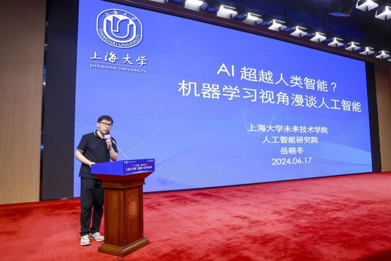 岳晓冬教授以《AI超越人类智能?机器学习视角漫谈人工智能》为题,从机器学习视角深入探讨了人工智能的广泛应用和未来趋势。他强调,机器学习已成为科研与产业创新的核心动力,他认为,AIGC智能大模型将重塑多个行业,但当前的现代人工智能技术主要依赖于大数据训练模型,在需要抽象思维和想象力以进行推理和创造的开放环境中,人工智能与人类智能之间仍存在一定的差距。