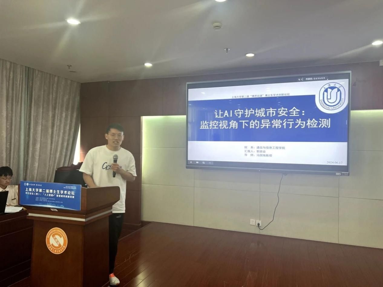 “人工智能+”智慧城市创新发展平行论坛在宝山校区举行,论坛由计算机工程与科学学院主持,与未来技术学院、社会学院、通信与信息工程学院、医学院、生命科学学院合作。论坛主要聚焦人工智能在智慧城市建设中的应用与创新,涵盖动态网络分析、智能交通、数据安全、医疗诊断、环境影响等多个领域。邀请到十位博士研究生围绕AI在城市治理、交通管理、医疗健康、安全监控、能源优化等方面的前沿问题与解决方案作主旨报告,四位专家对报告内容进行了点评指导。通过跨学科的交流与合作,推动AI技术在智慧城市中的深度融合,引领智慧城市的创新发展,提升城市管理效率和居民生活质量,为未来智慧城市的建设提供新思路和新模式。