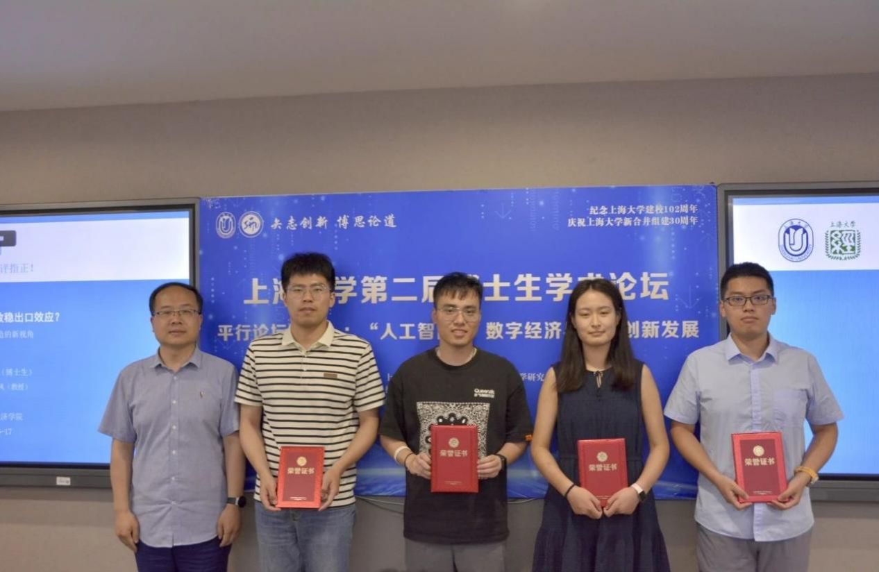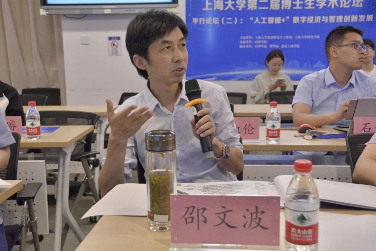 “人工智能+”数字经济与管理创新发展平行论坛在宝山校区举行,论坛由经济学院主持,与管理学院、理学院、悉尼工商学院合作。论坛邀请到十位博士研究生就人工智能技术在数字经济与管理创新发展过程中的新方向和应用前景作主旨报告,四位专家对报告内容进行点评。旨在为不同学科博士生提供个人学术展示、交流学术观点的平台,更好促进人工智能前沿技术与经济管理学科的交叉研究创新,更深层次探索人工智能时代催生的新动能和新产业,探讨人工智能技术为数字经济与管理领域带来的机遇与挑战。