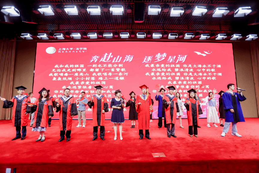 毕业典礼在全场齐唱《我和我的祖国》中落下帷幕。衷心祝愿法学院毕业生此去前程似锦,一路繁花!