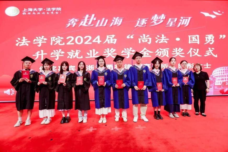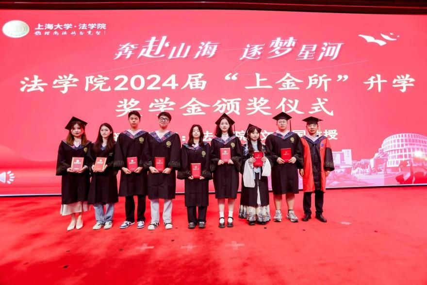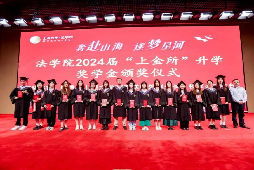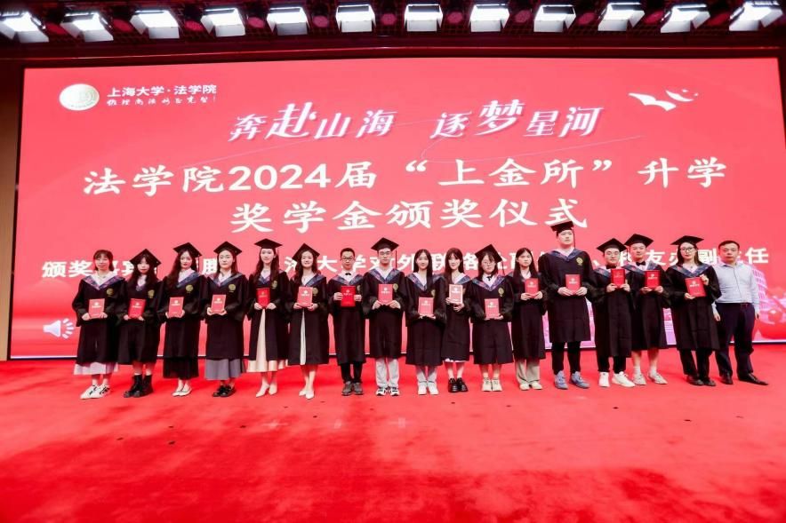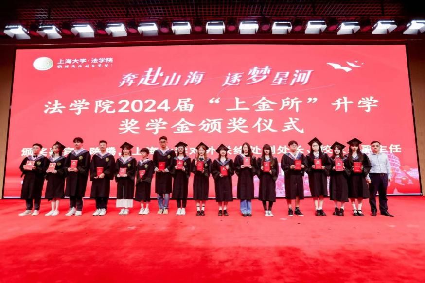 在2024 年“上金所”升学奖学金颁奖仪式上,ac米兰官网中文网站对外联络处副处长、校友办副主任陈腾,法学院文学国教授共同为获得“上金所升学奖学金”的同学颁奖,预祝大家继续攀登法学高峰。