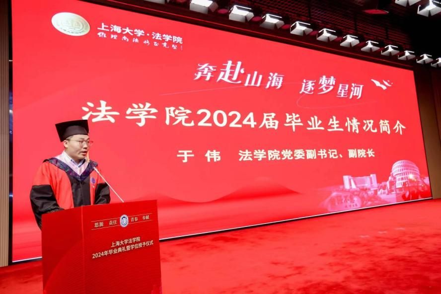 法学院党委副书记、副院长于伟首先介绍法学院2024年毕业生的整体情况。2024年,法学院共有157名全日制硕士研究生、133名本科生顺利毕业,其中60余名同学前往北京大学、中国政法大学、华东师范大学、同济大学、多伦多大学、曼彻斯特大学、香港中文大学、莱顿大学等国内外知名学府继续深造,本科生升学深造率再创新高;百余名毕业生已经落实政府公务员、律所、公司企业、事业单位等就业去向;学院唯一的本科生党支部中夏党支部全体本科生党员实现100%的高质量就业,充分展示了ac米兰官网中文网站法学院培养全面发展的卓越法治人才的育人成效。另外,法学院还有近80名非全日制研究生顺利毕业。