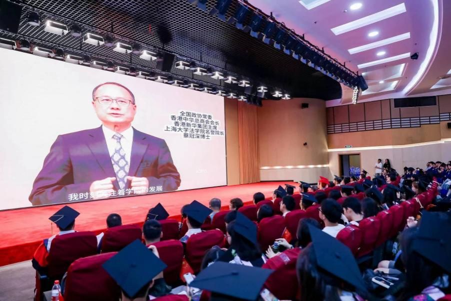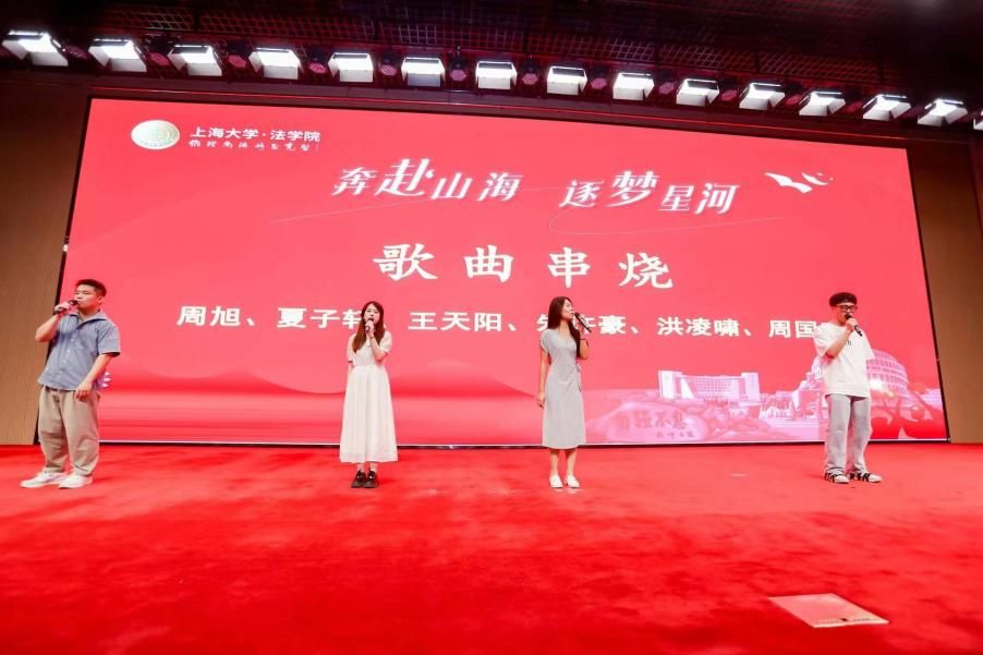 承载师生满满回忆的2024年毕业生暖场视频、ac米兰官网中文网站法学院名誉院长蔡冠深博士寄语视频后,由周旭、夏子轩、王天阳、朱许豪、洪凌啸、周国奇带来的歌曲串烧点燃了全场的氛围。随后,毕业典礼在雄壮的国歌声中拉开帷幕。