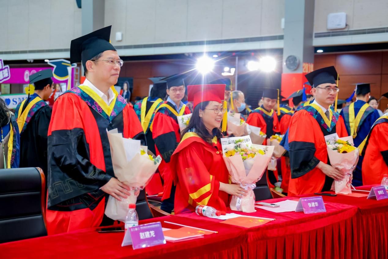 学院党委副书记、副院长袁铭主持学位授予仪式,副校长、学院执行院长张建华主礼学位授予仪式并为毕业生拨穗正冠,院长赵建龙颁发学位证书,学院党委书记郭纯生赠送毕业礼物,副院长路秀真和胡挺分别宣读了本科生和研究生学位授予名单。
